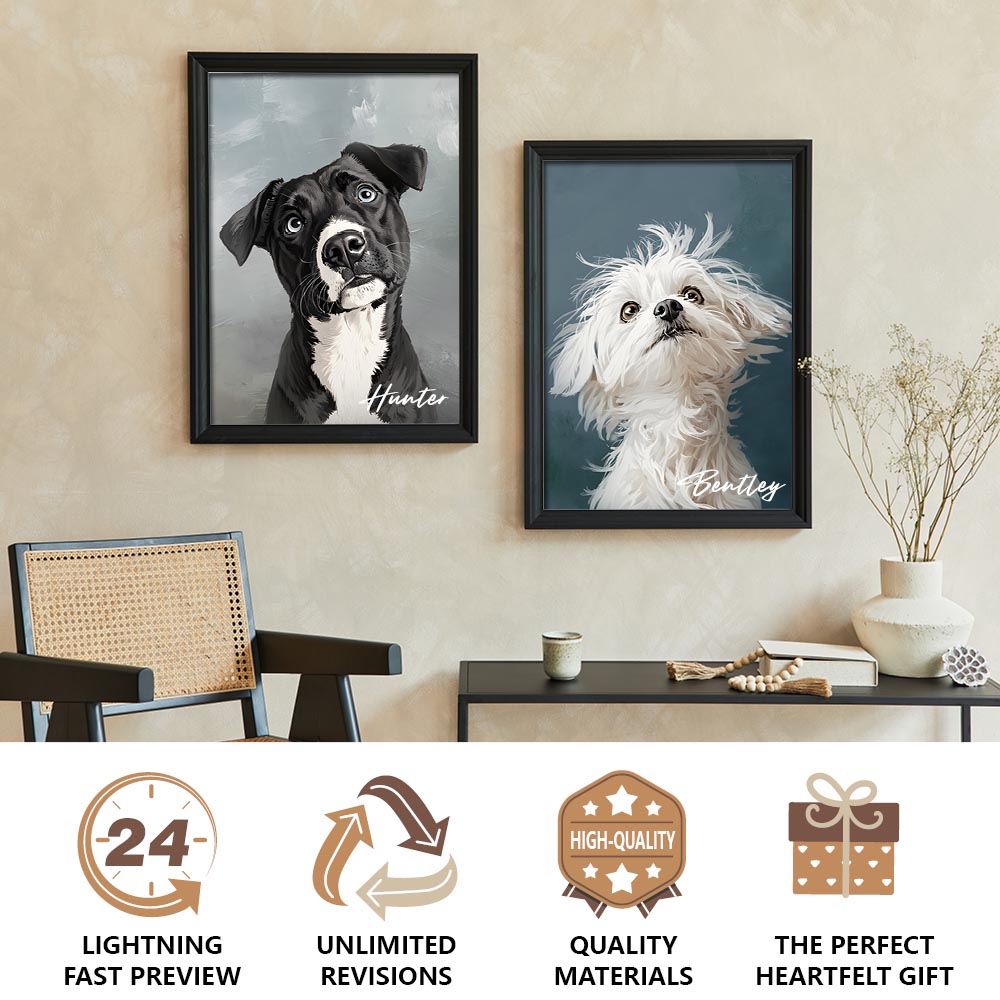 Make your pet the star of your wall with Trendy Paw. Designed for the modern home, this collection blends pop-art energy with chic design flair. Vibrant colors, clean lines, and a touch of personality create portraits that pop with attitude. Ideal for pet lovers who want a fun, fashionable way to showcase their furry friend’s unique vibe.