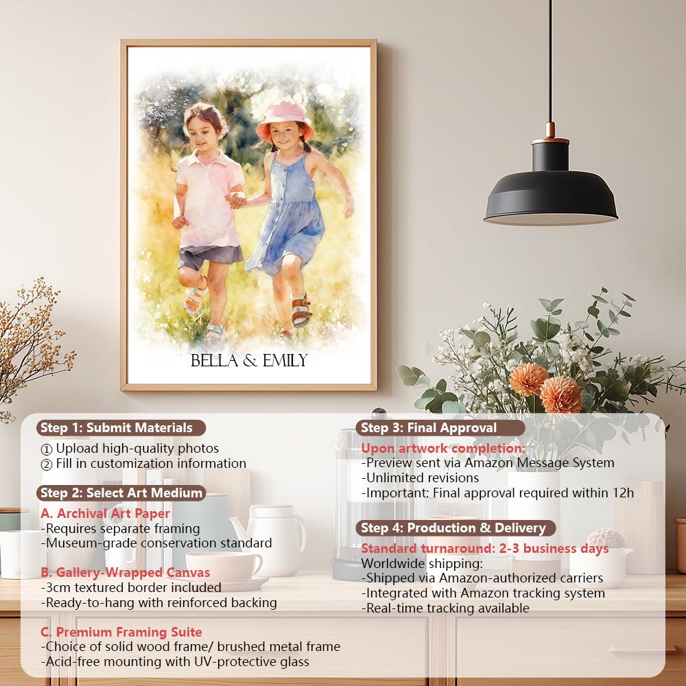 Celebrate life’s most meaningful moments with MemorArt, a hand-painted watercolor portrait series that turns your memories into timeless art. Each piece is created from your favorite photo, capturing the warmth of human connection through gentle colors, flowing brushstrokes, and heartfelt emotion.